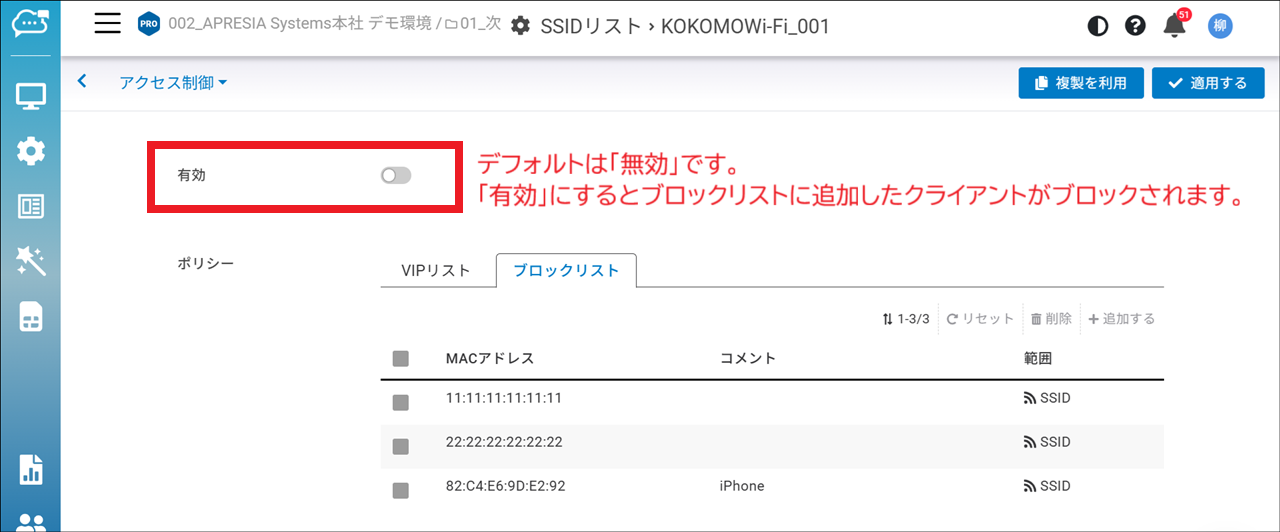 クライアントのブロックリストを有効にする方法