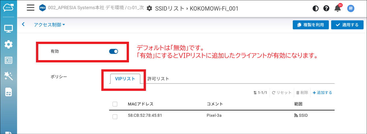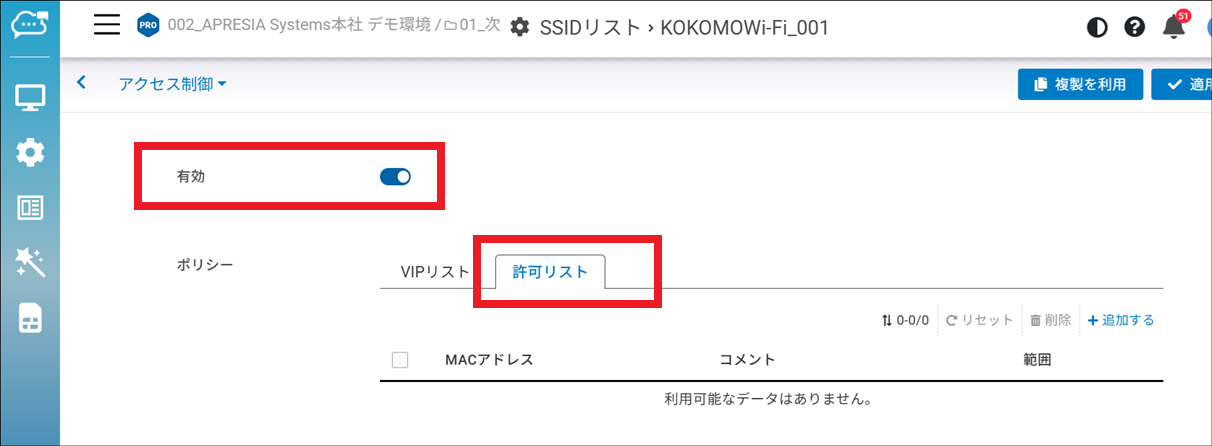 クライアントの許可リストを有効にする方法