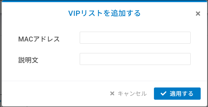 追加する:VIP対象のMACアドレスを登録します。