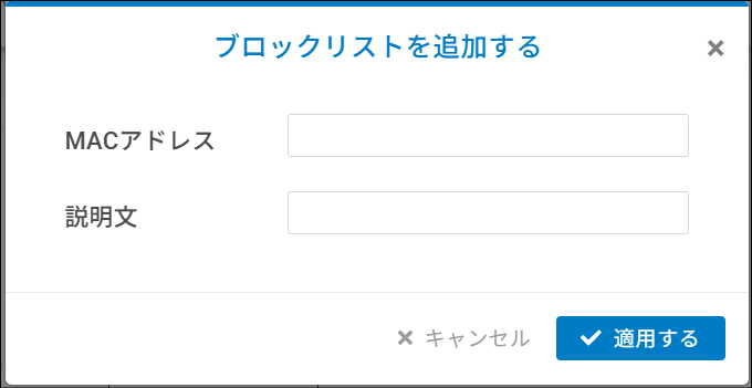 表示される画面にしたがい、ブロック対象のMACアドレスを登録・削除します。