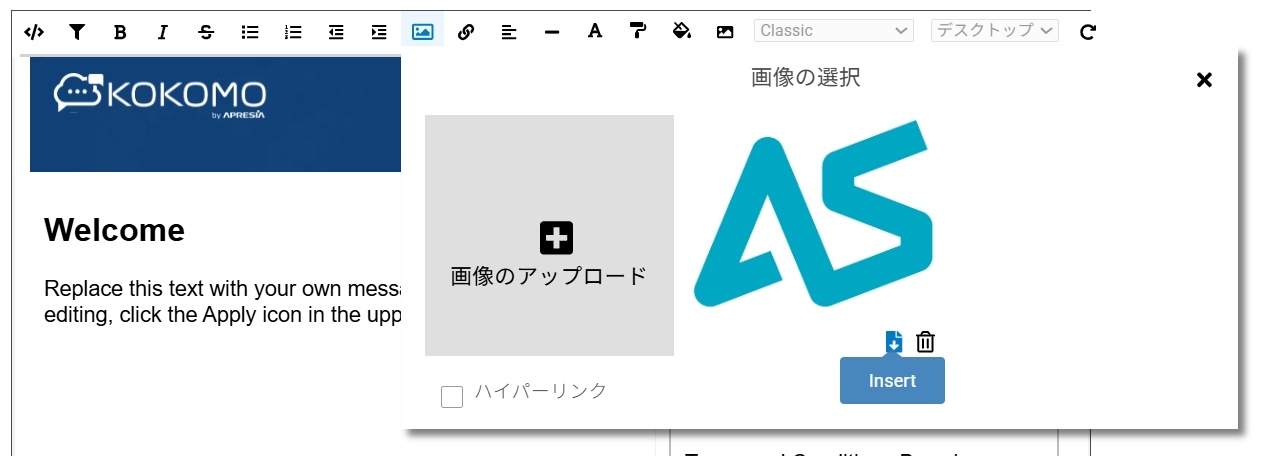 画像をダブルクリックするか、「Insert」アイコンをクリックすると画像が追加されます。