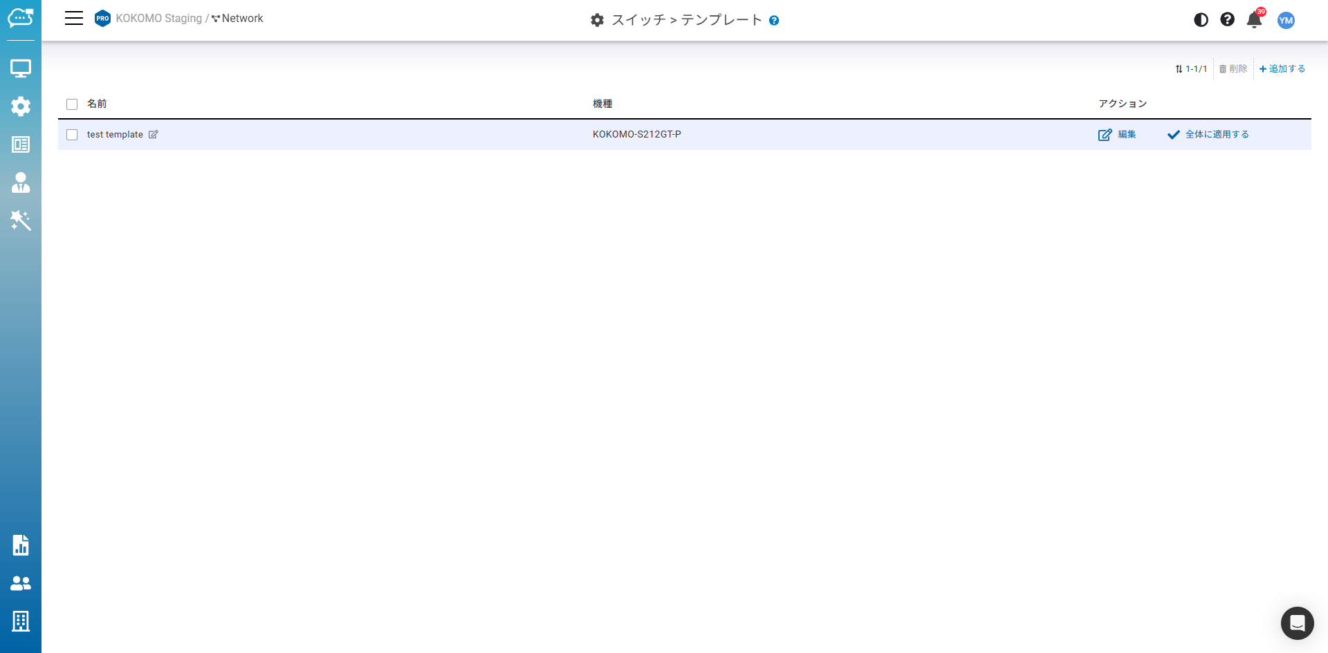 「全体に適用する」により、ネットワーク内で同一モデルの全デバイスにスイッチテンプレートが適用されます。