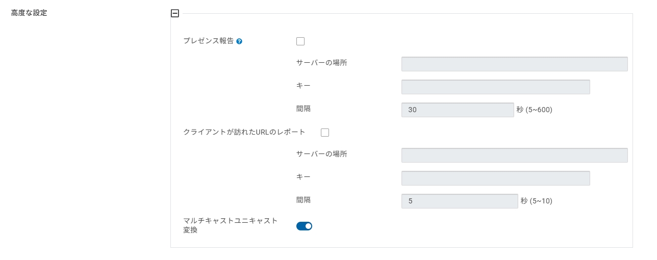 KOKOMO Cloudでは、プレゼンスサービスの設定は「設定」>「一般設定」>「アクセスポイント」>「高度な設定」にあります。