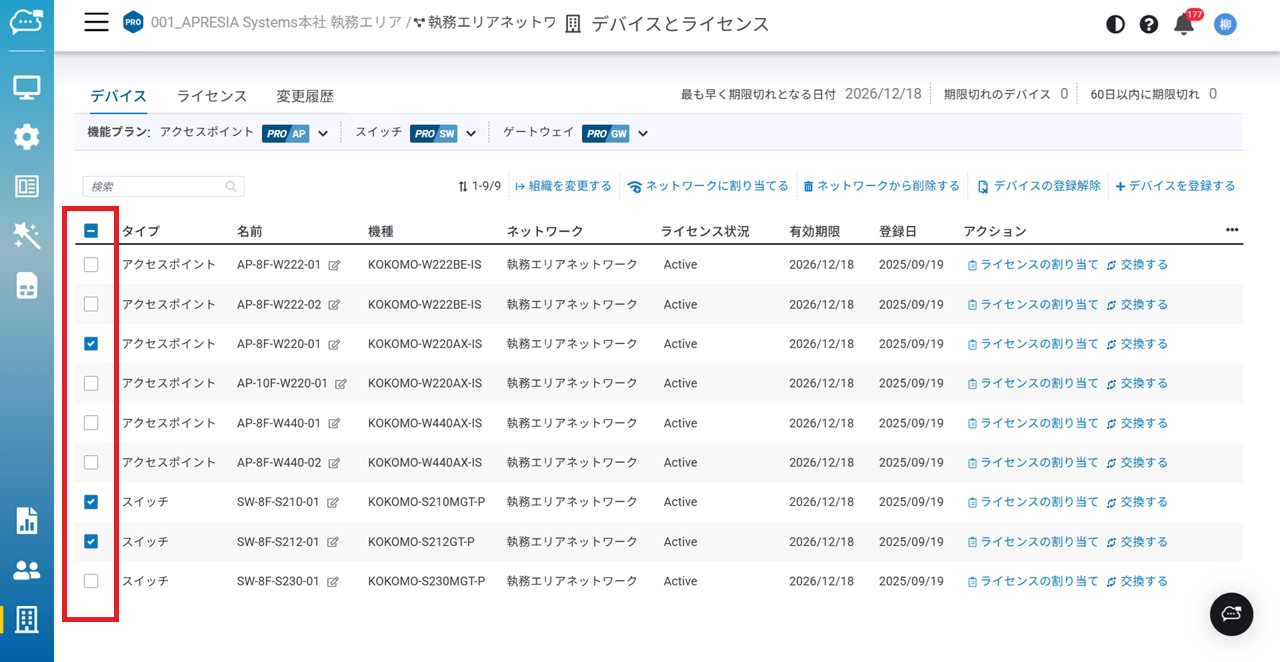 必要に応じて、1台または複数台のデバイスを選択します。