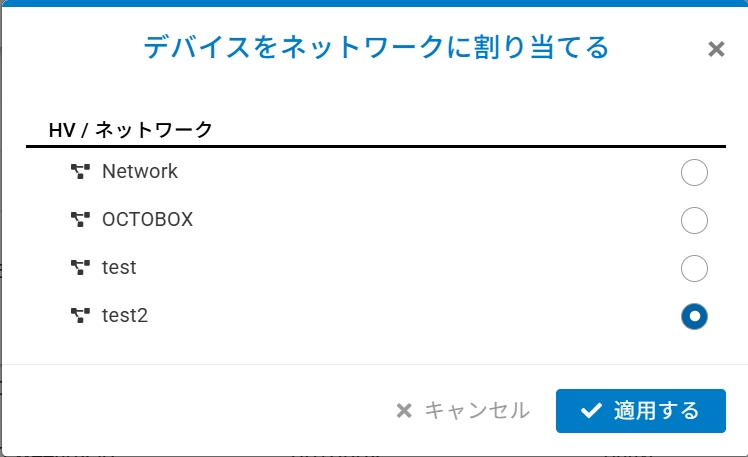 割り当てるネットワークを選択し、「適用する」をクリックします。