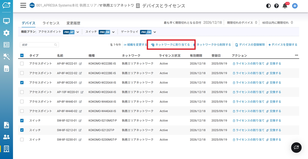 デバイスをネットワークに割り当てる