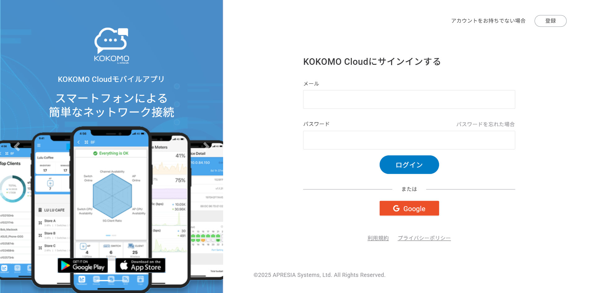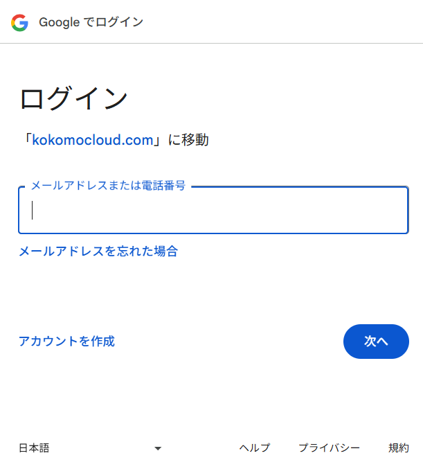 アカウントが作成・登録されたら、以下の手順でKOKOMO Cloudにログインできます。