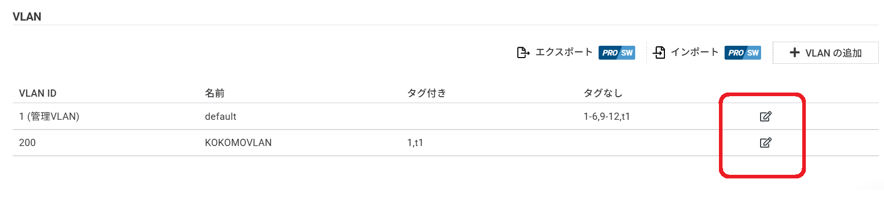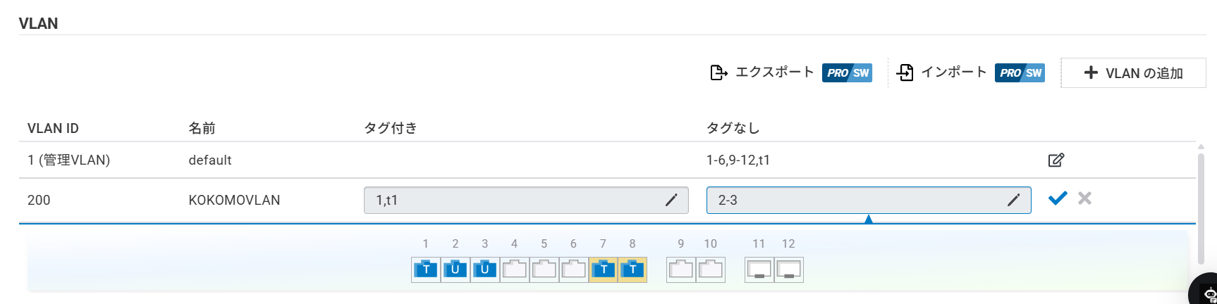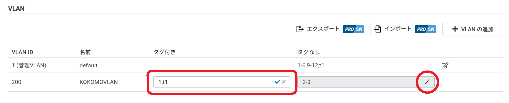 VLANエクスポートとインポート