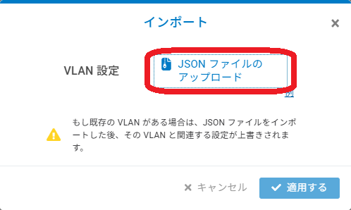 JSONファイルをインポートすることで、特定のスイッチに複数のVLANを手動でセットアップできます。