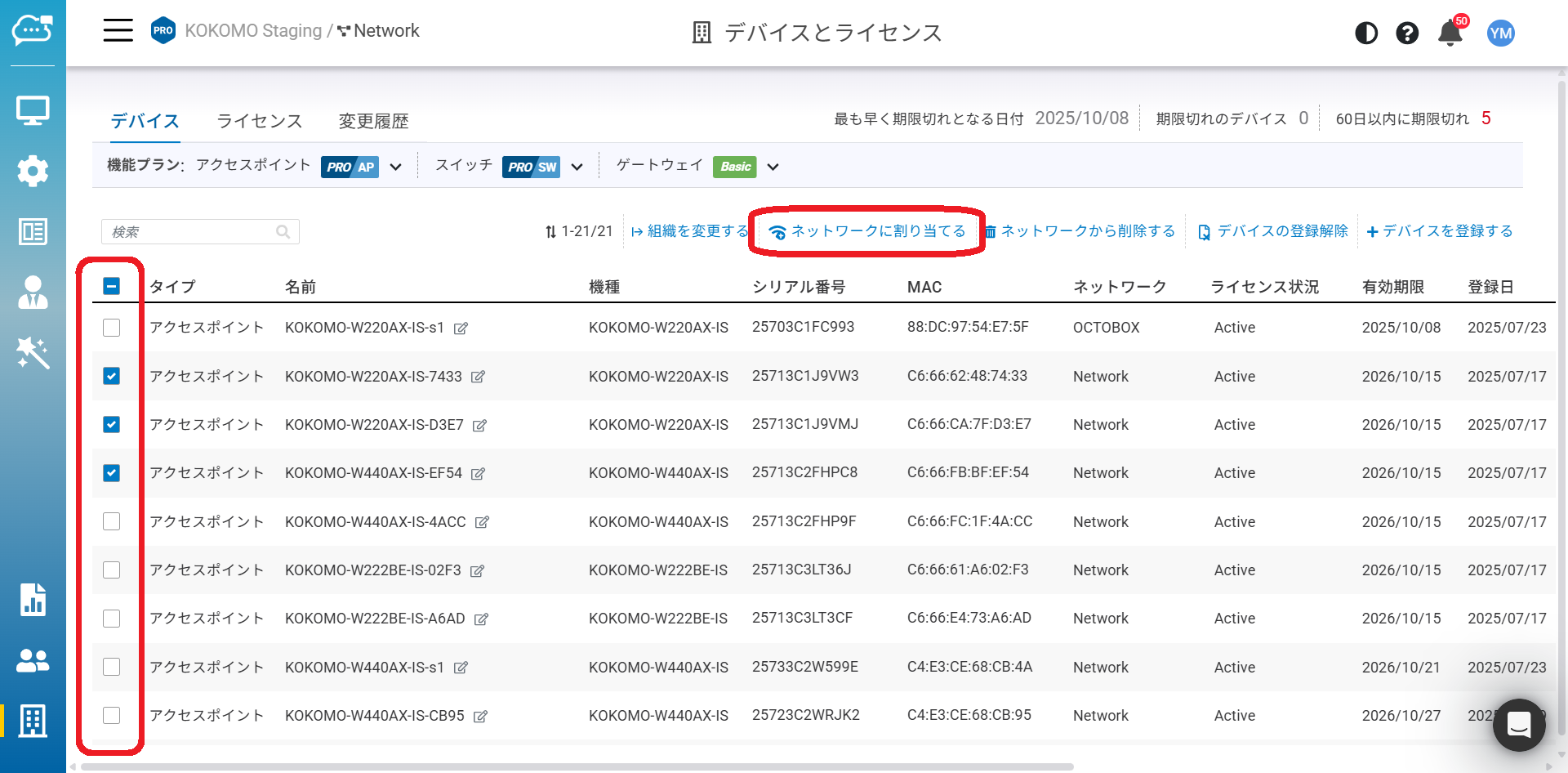 この機能により、ユーザーはデバイスをネットワークへ割り当てることができます。