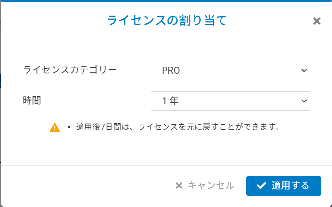 デバイスへのライセンス割り当て後、7日間の猶予期間があります。この期間中は、ライセンスを元に戻すことができます。