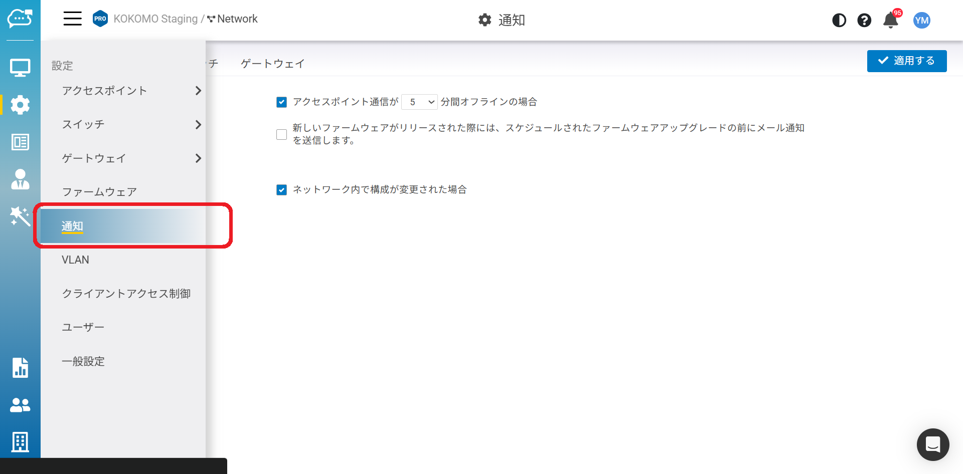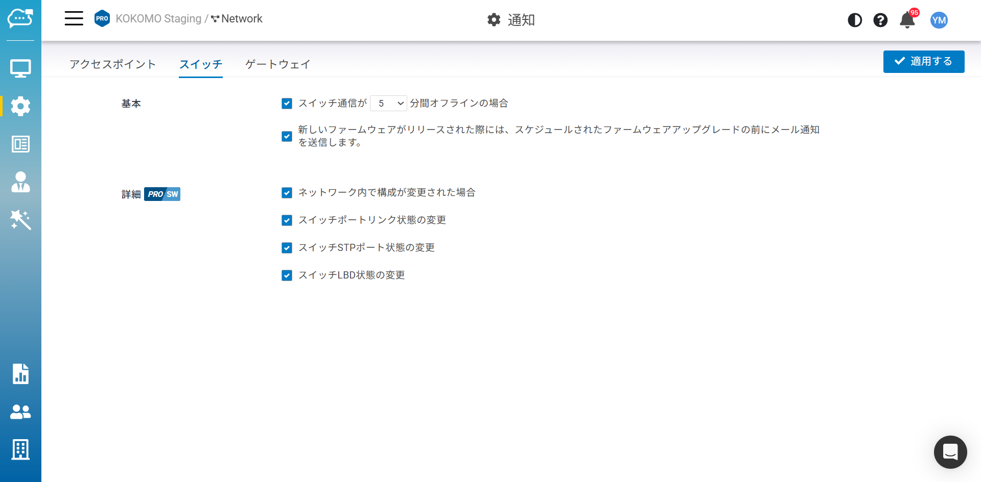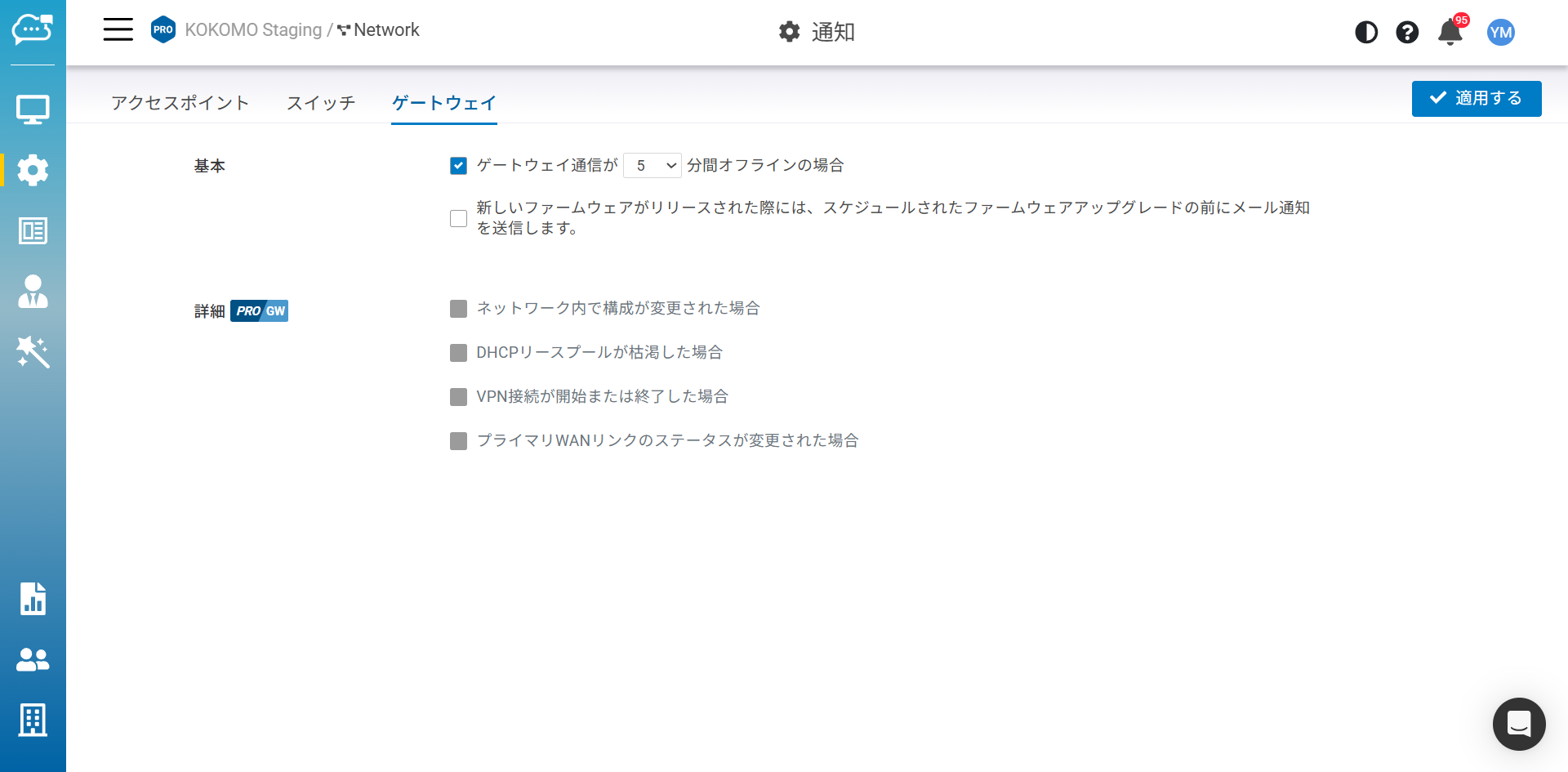 ネットワーク内で構成が変更された場合:有線設定、ファームウェアアップグレード、または個々のデバイス設定がデフォルト設定をオーバーライドした場合にメールを送信します。