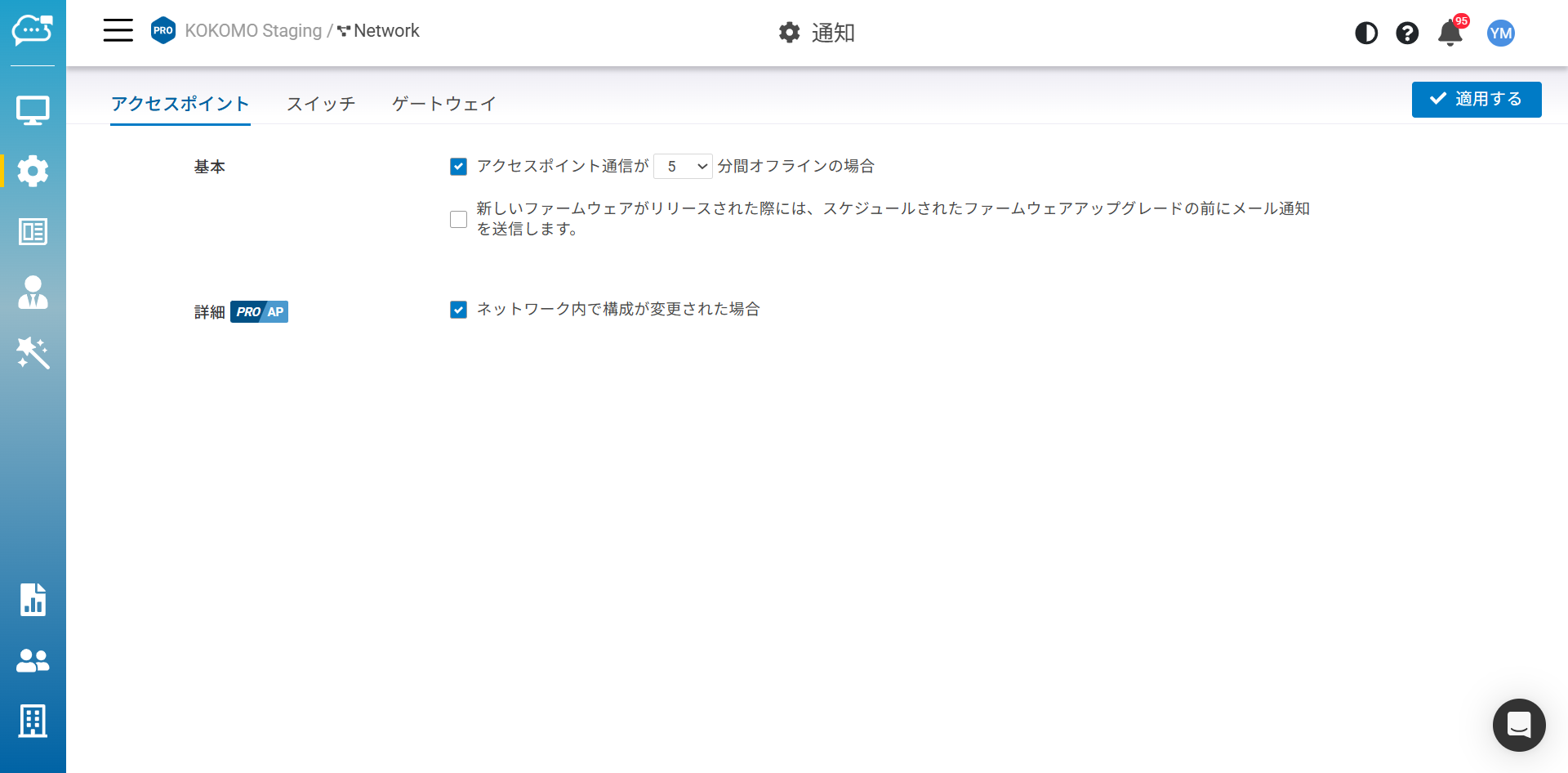 ネットワーク内で構成が変更された場合:SSID、無線設定、ファームウェアアップグレード、または個々のデバイス設定がデフォルト設定をオーバーライドした場合にメールを送信します。
