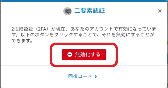 二要素認証を非アクティブ化する方法